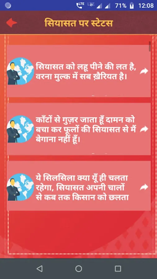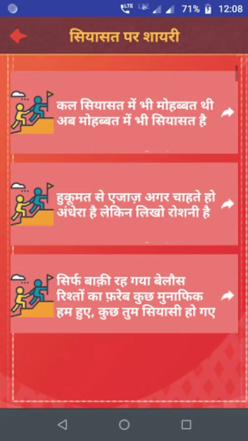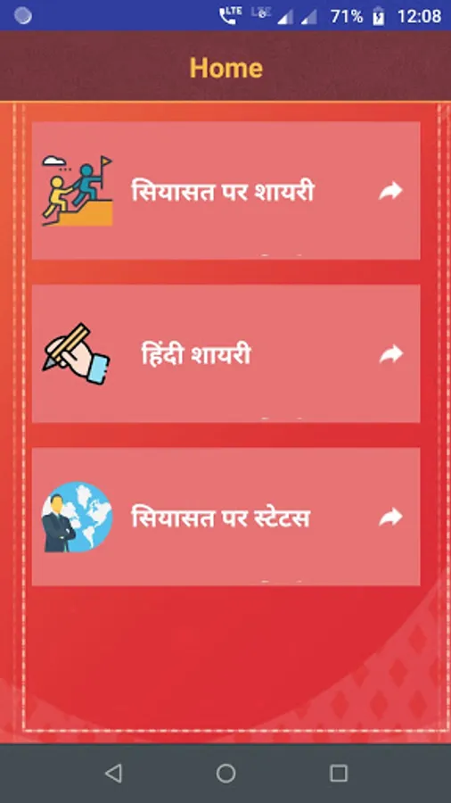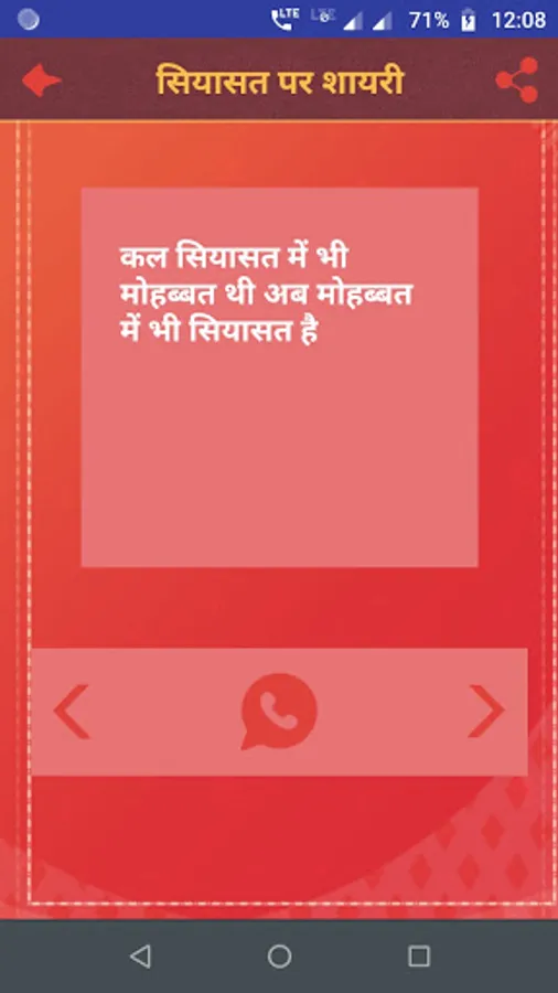 This app contains largest collection of hindi Siyasat Shayari & Status.