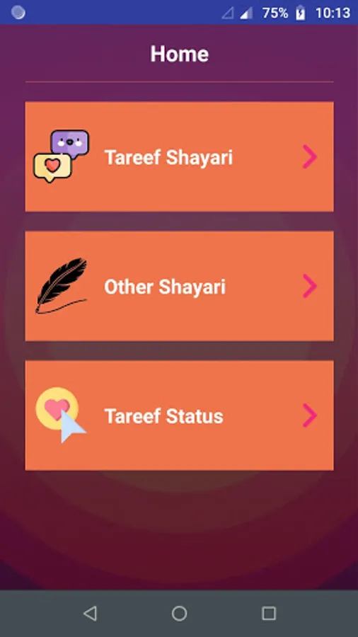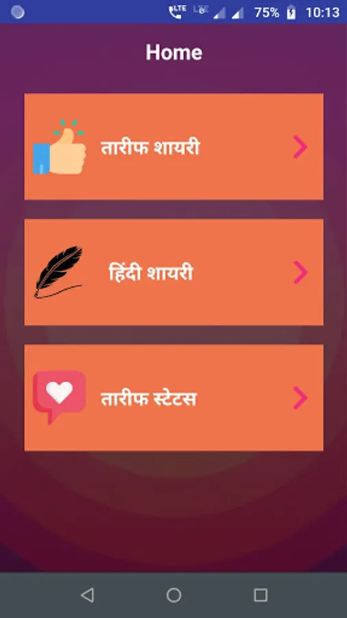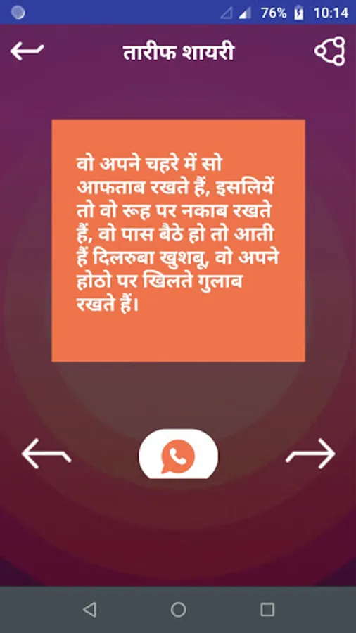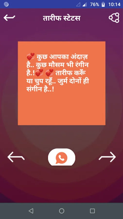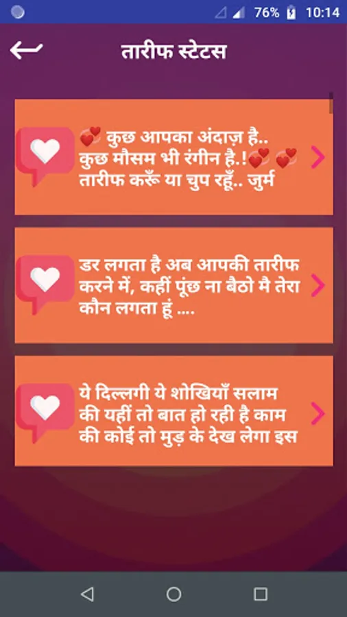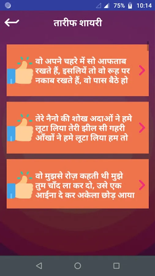 This app contains largest collection of hindi Tareef Shayari & Status.