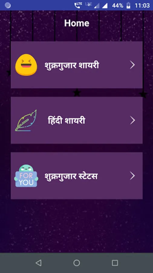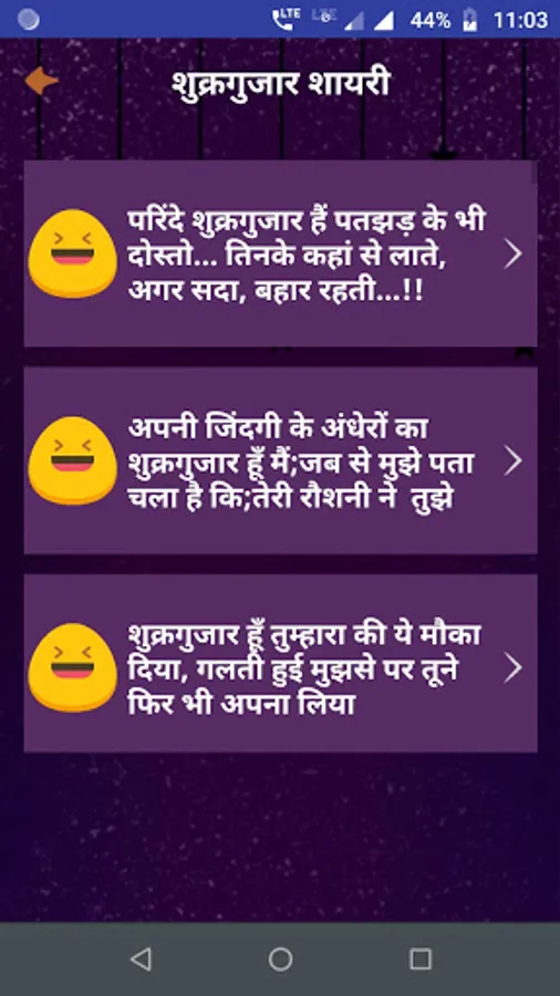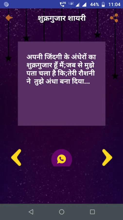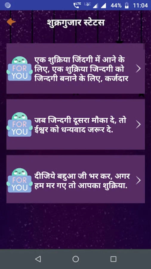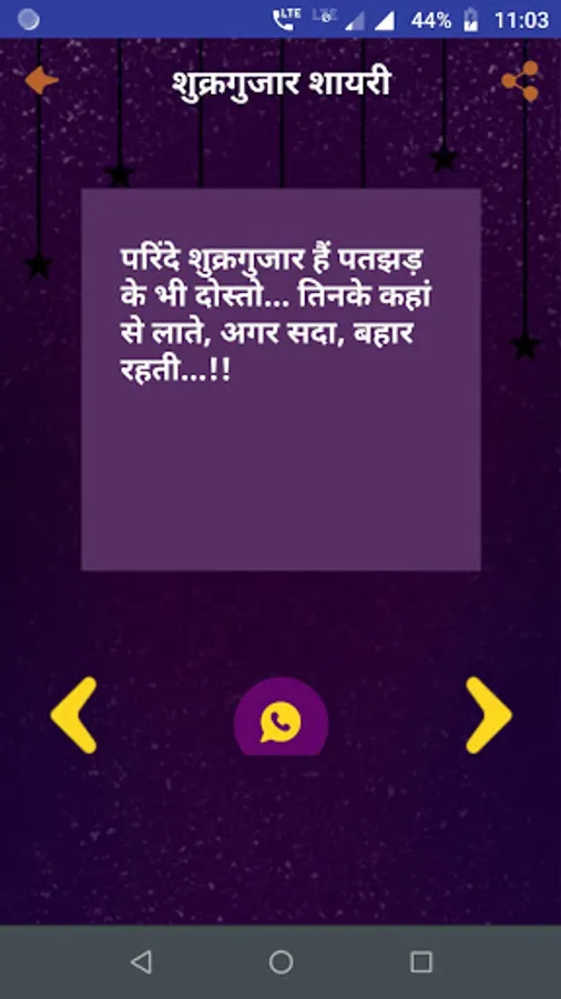 This app contains largest collection of hindi Thankful Shayari & Status.