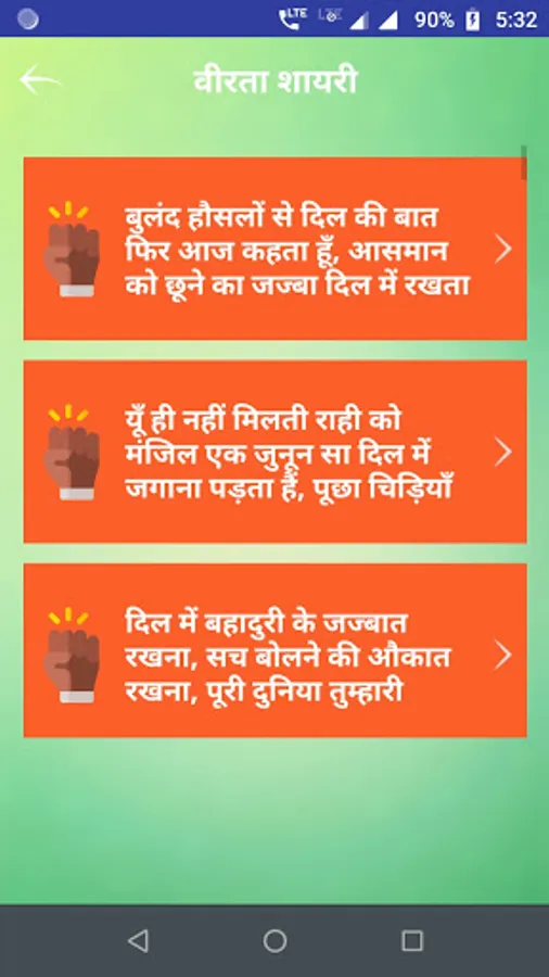 This app contains largest collection of hindi Veerta Shayari & Bravery Status.