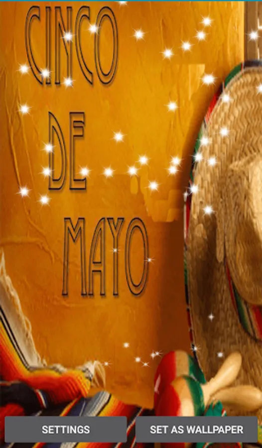 Cinco De Mayo with high quality images. Flow of Stars randomly on Cinco De Mayo background make your phone look good . Cinco De Mayo all the time and your touch on phone will make more stars to flow in the direction of your touch.
