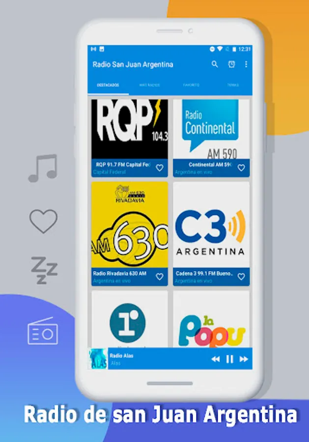 Our application allows you to listen live all the Radio stations of San Juan Argentina Argentina FM and AM and the Internet radio of Argentina. Choose what you want to listen to: news, sports, music and much more.