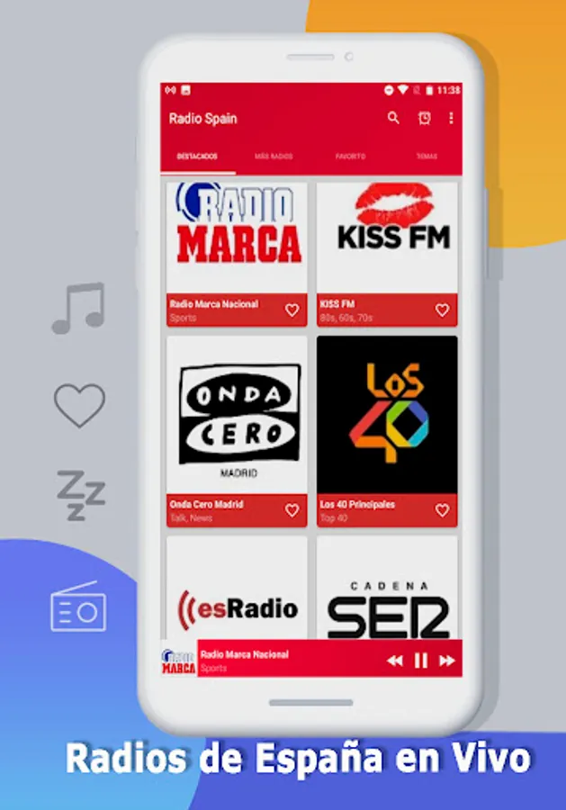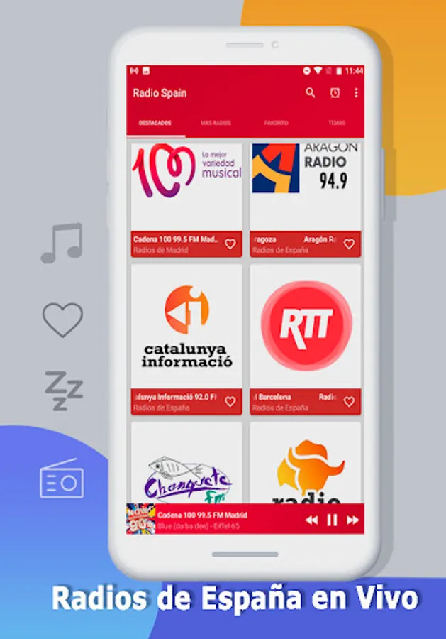 Our application allows you to listen live to all radio stations in Spain FM and AM and Internet radio in Spain. Choose what you want to listen to: news, sports, music and much more.