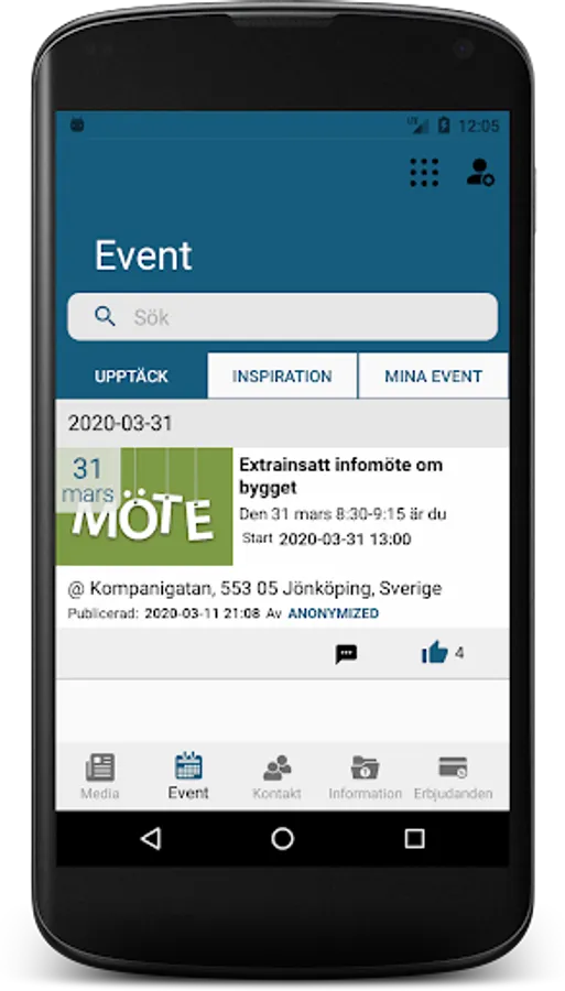 The app is designed to facilitate communication and information at the center and contains ongoing information about news, activities and events, as well as important property information and personnel offers.