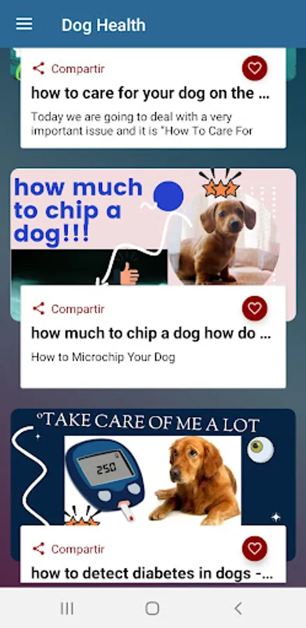 With this application you can see live through explanatory videos the different diseases that your dog can have and advice to take care of his health and home remedies to solve those health problems that your pet may have.