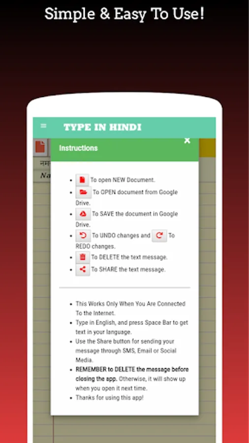 This app - TYPE IN HINDI - comes to your rescue and helps you to