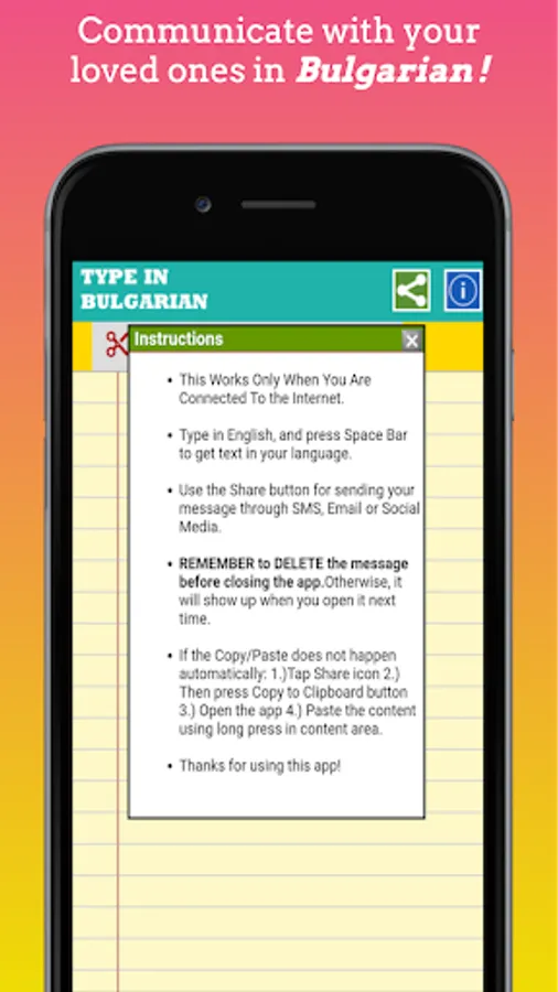 a.) Type the text and after you get the full text in Bulgarian, press Share
