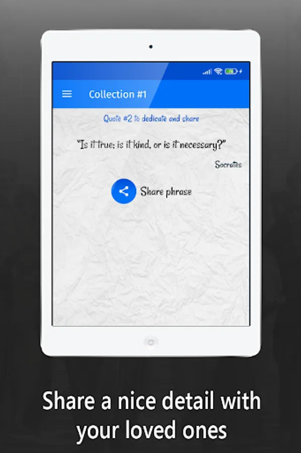 This App socrates phrases has a friendly interface, easy to use and fast, the connection to the servers is good optimized.