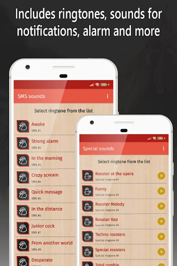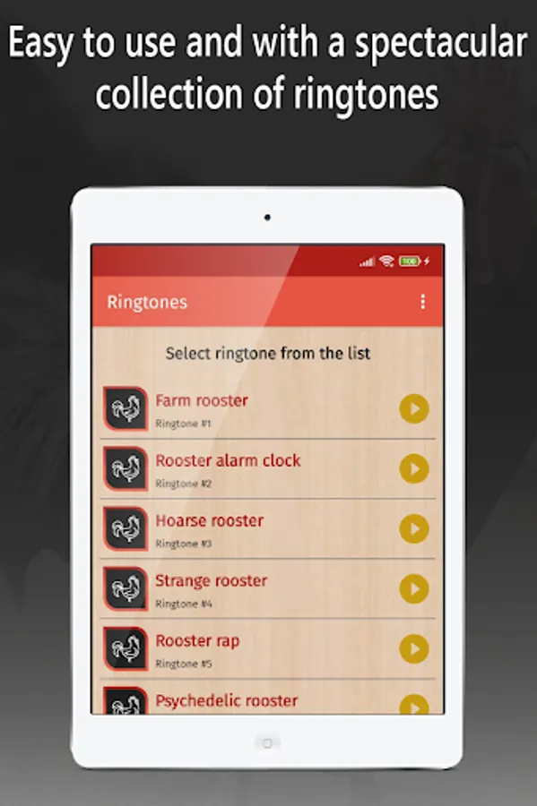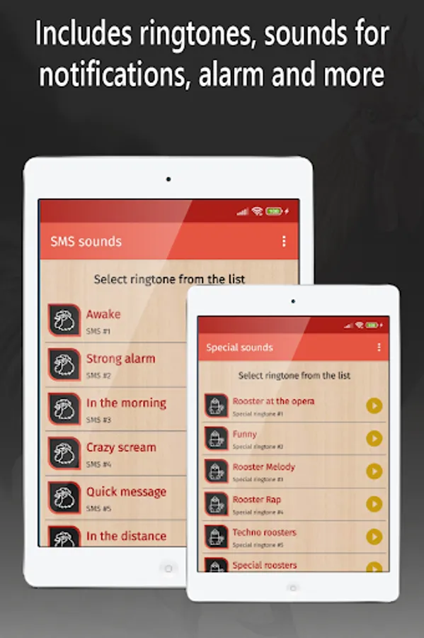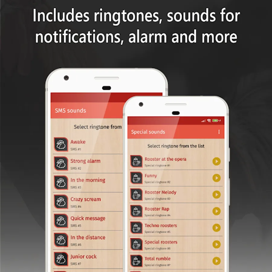 rooster ringtone app is designed for your cell phone, with a great collection of ringtones rooster that you can use as: ringtones, sms sounds, alarm or notification.