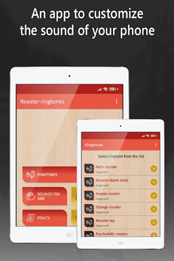 Looking for ringtones for your mobile device? Download the rooster ringtones app and personalize the sound of your device by choosing the one you like best from the wide variety of phone sounds available.