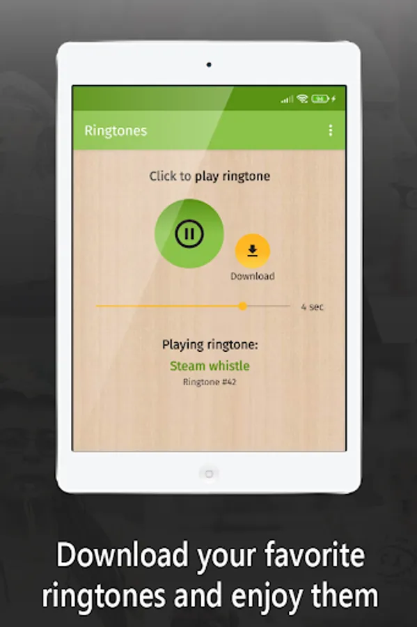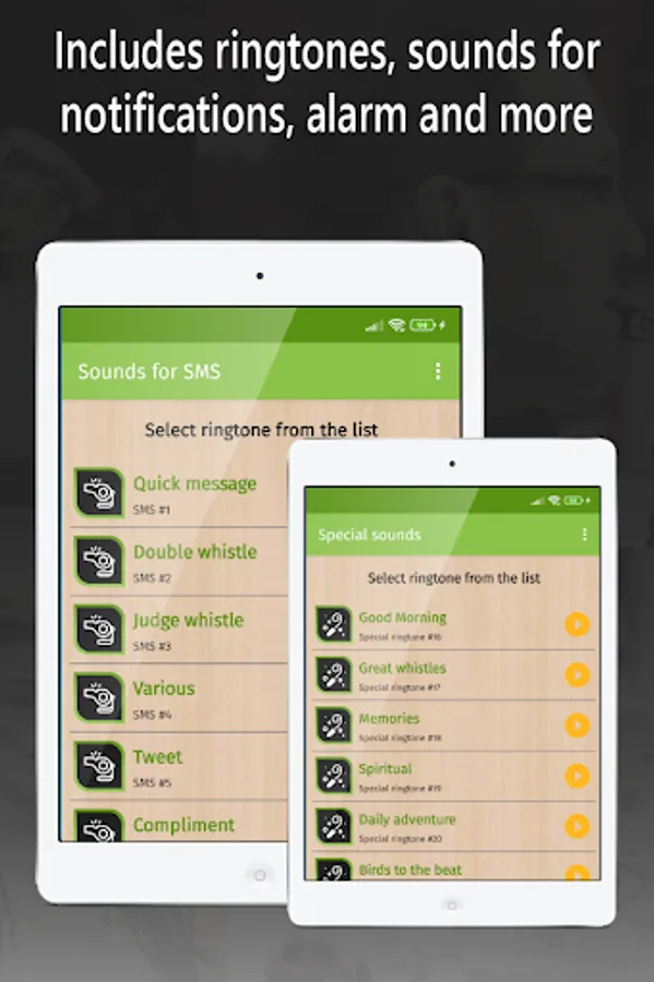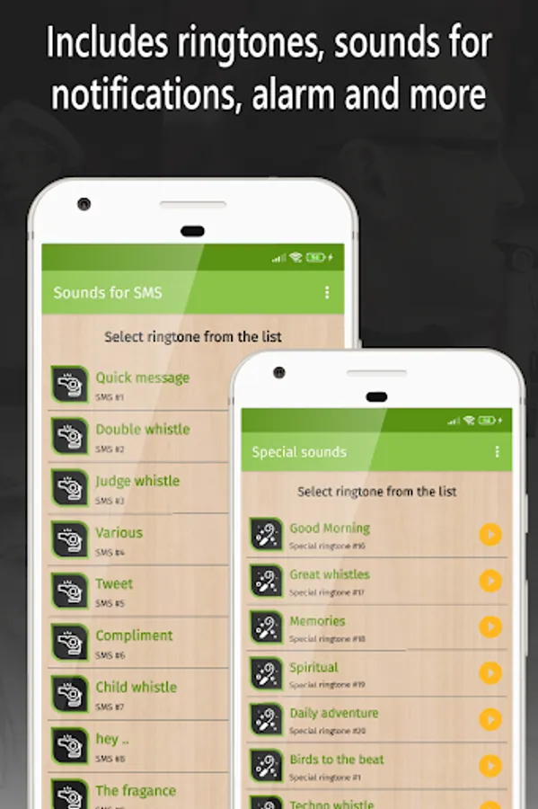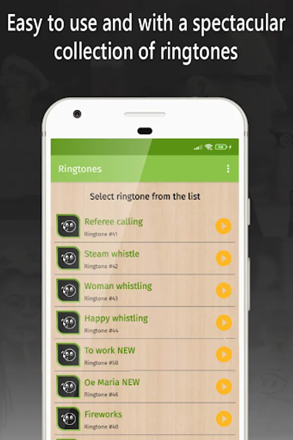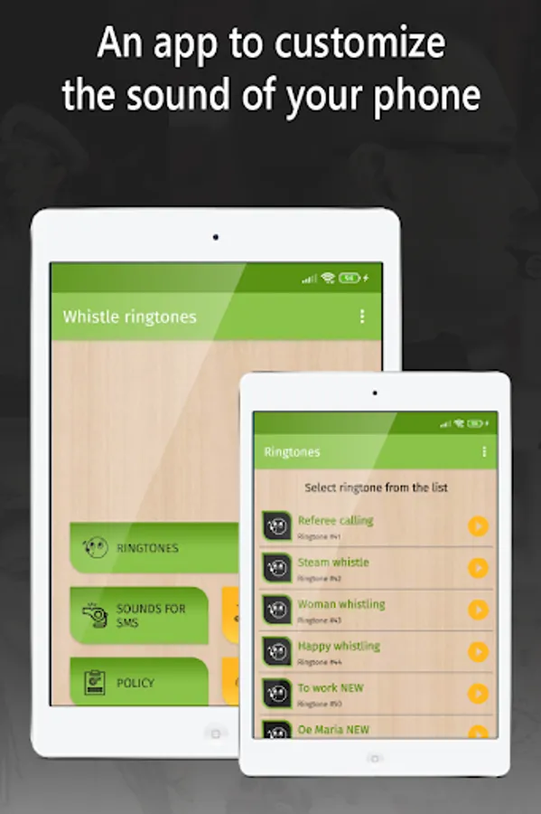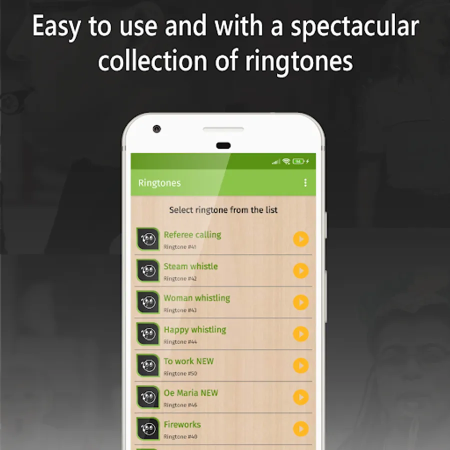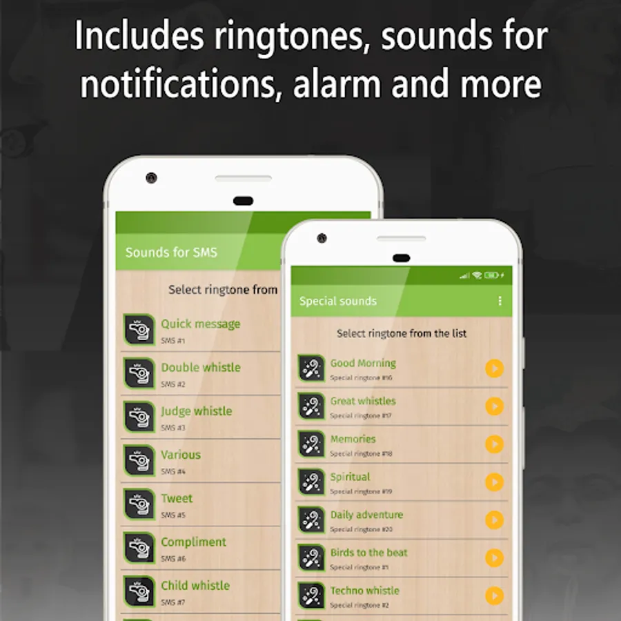 whistle ringtones is a ringtones app to enjoy great ringtones whistle and tones (special sounds and sms tones included), it has a friendly interface, easy to use and fast and the connection to the servers is good optimized.