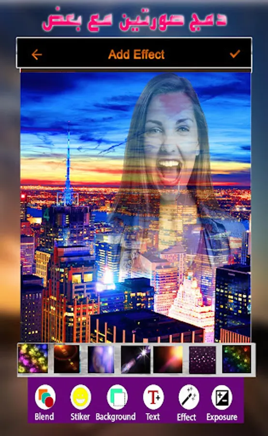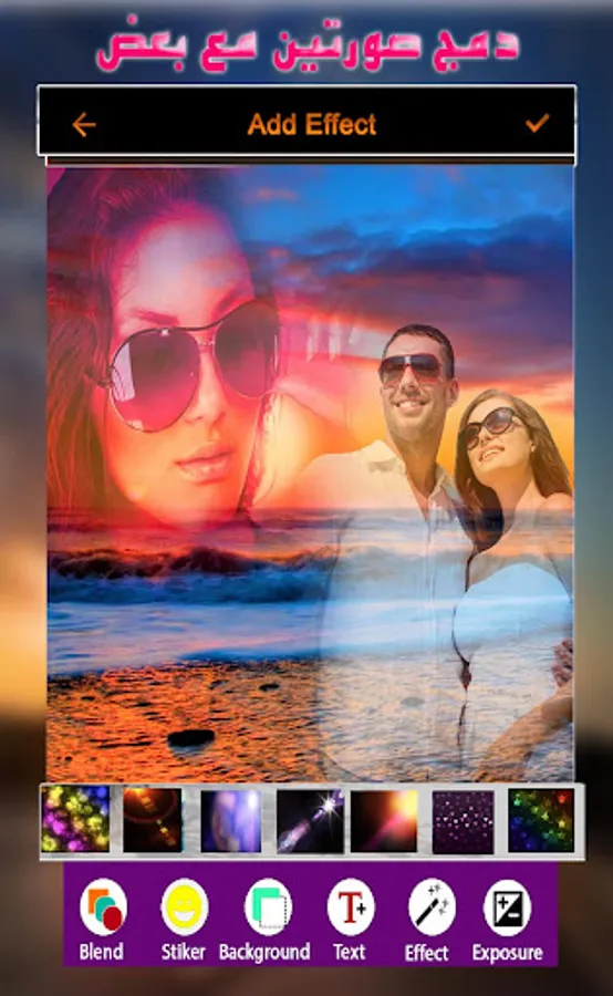 Sixth: You can use the effects that the program contains to add some creative touches to the image, whether by writing a name or phrase or adding an emotion or other effects that make the image unique and wonderful.