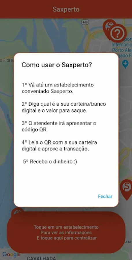 The app provides a map with the points closest to your location where you can withdraw using Saxperto.
