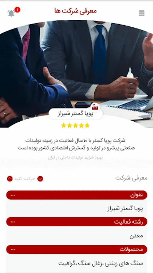 This application is designed so that users can search the software, find their desired company based on company name, brand, field of activity, company address, products and raw materials and contact the desired location directly. . All companies based in Fars province can easily interact directly with the people and their colleagues in other cities and provinces by subscribing to this software and introduce themselves and their type of activity to the software users as much as possible.