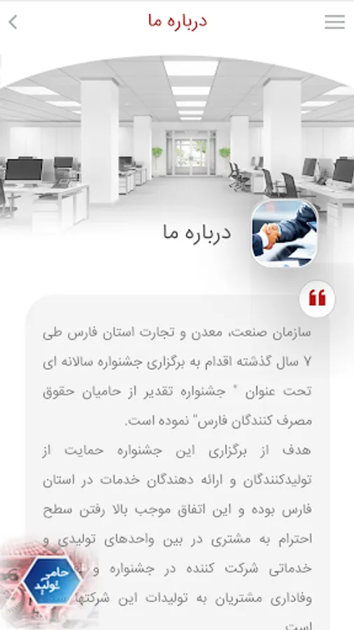 Fars Province Industry, Mining and Trade Organization is proud to provide the most complete guide to production, service and commercial companies in Fars Province in the form of a mobile application.