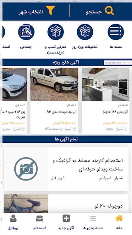 با نصب اپلیکیشن تب شی در کمتر از 1 دقیقه آگهی خود را بصورت رایگان ثبت و در معرض دید تمامی استان فارسی ها قرار دهید.