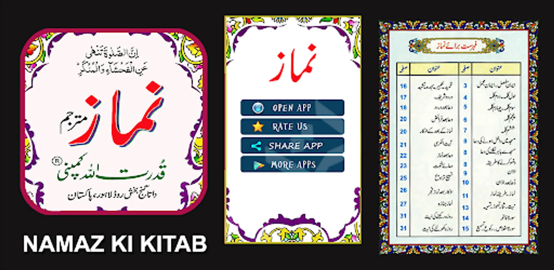 Namaz Ki Kitab app contain namaz ka tarika, janaza ki namaz, Duas, Azan or azan ki dua, wuzu ka tariqa, surah Fatiha, surah Ikhlas, Durood Sharif, Nama k bad azkar, Dua e Qunoot, Tarweeh ke dua, roza ki dua etc.