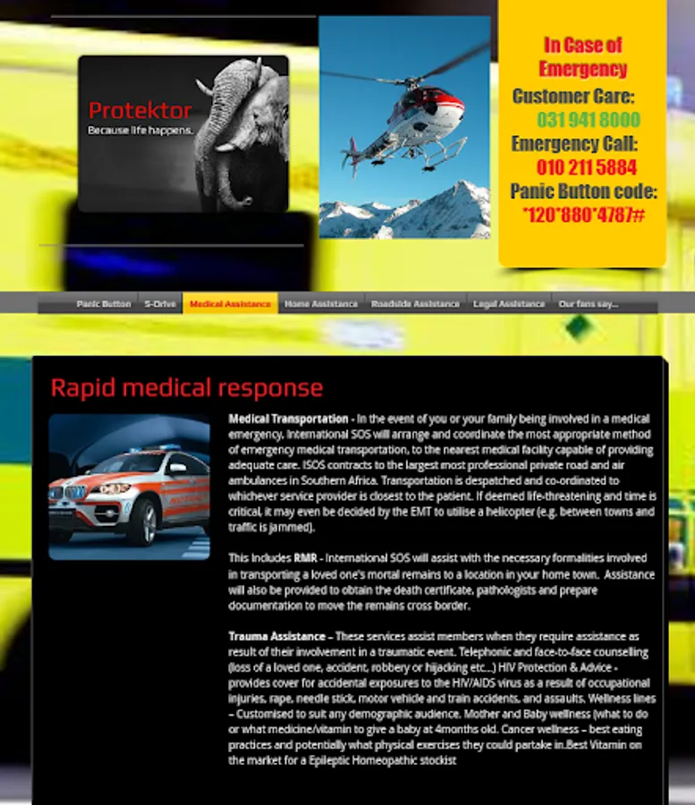 Protektor offers 7-in-one emergency services for South African members through Ec3. Subscribers enjoy 24/7 access to the following services: Emergency medical evacuation; Home Assist; S Drive; Medical advice lines; Legal assistance; Roadside services plus a panic button on their mobiles.