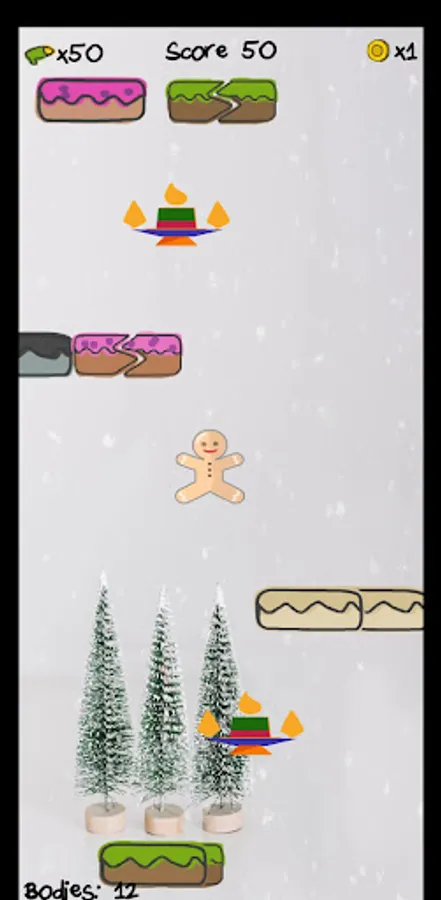 Gingerbread Jumper is a fun reaction jump game. In the game, you must tilt to move the gingerbread left or right and avoid moving candles.