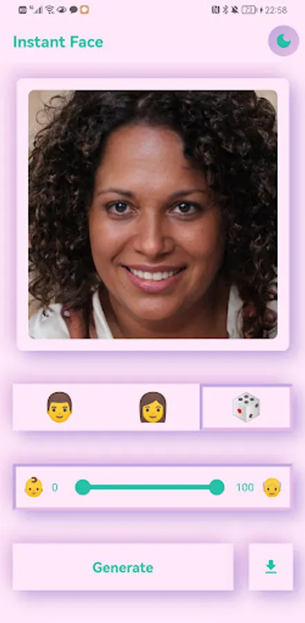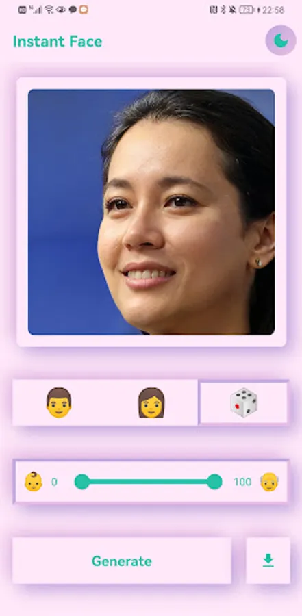 Instant Face is a cool AI random human face generator app. This app can help you create a unique face photo in one click with age and gender settings.