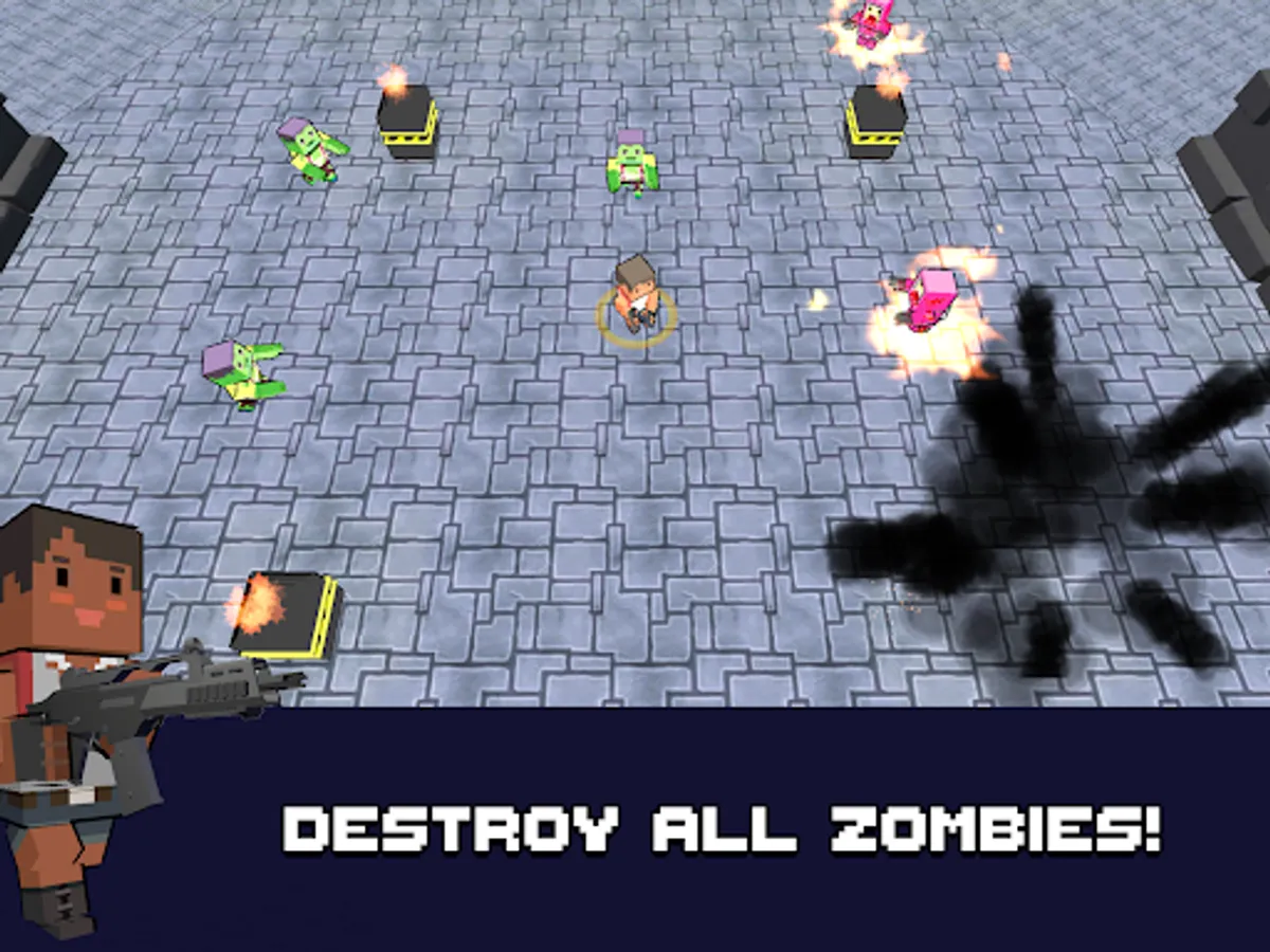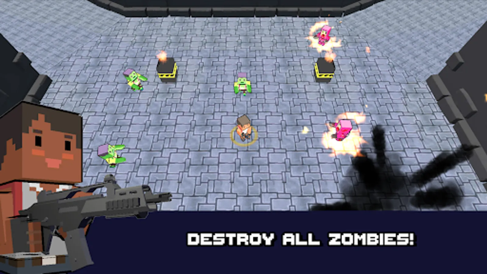 Survive various waves of zombies with weapons and improvements that unlock during the game.