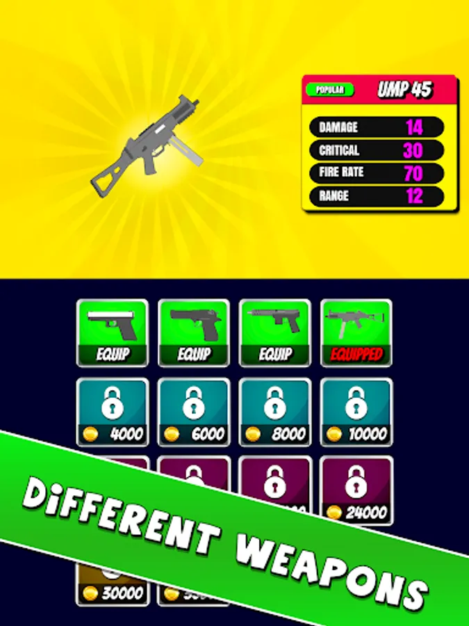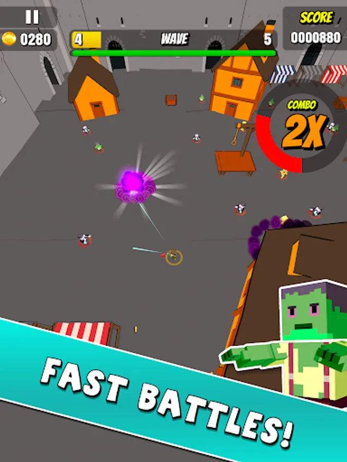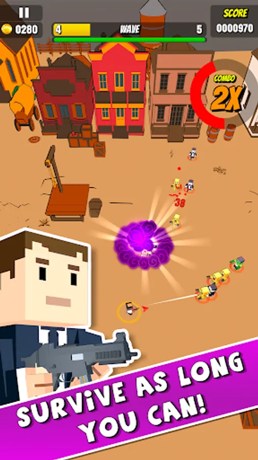 Survive various waves of zombies with weapons and improvements that unlock during the game.