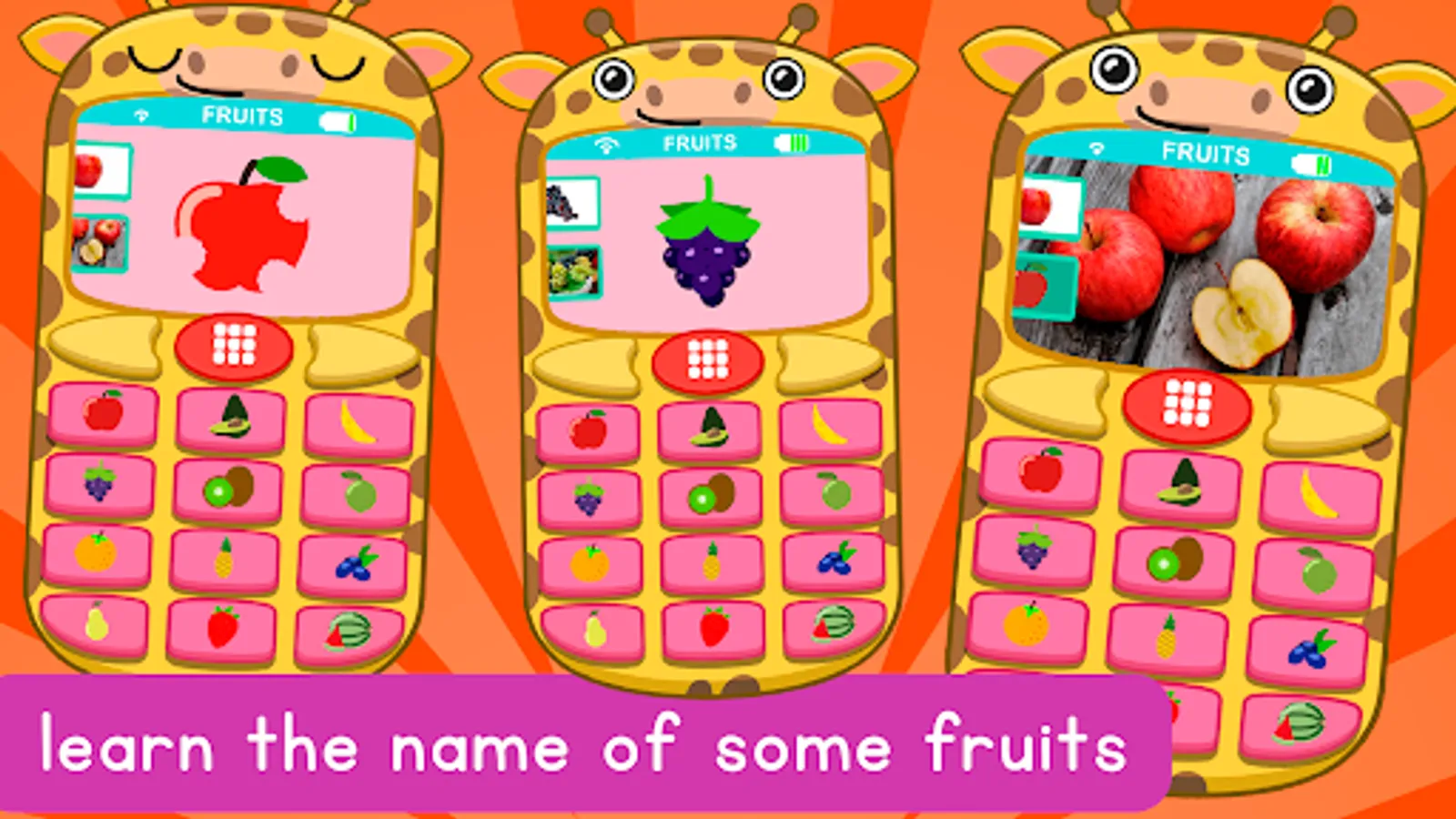 - Fruits with illustration and photo (apple, banana, grape, pineapple and more fruits).