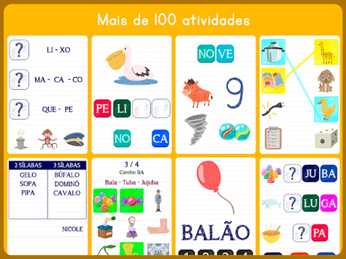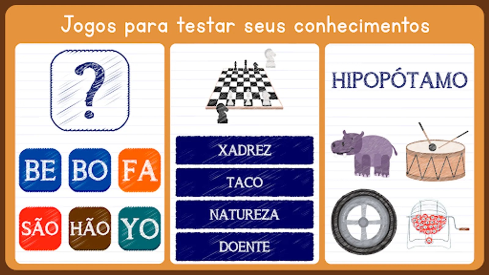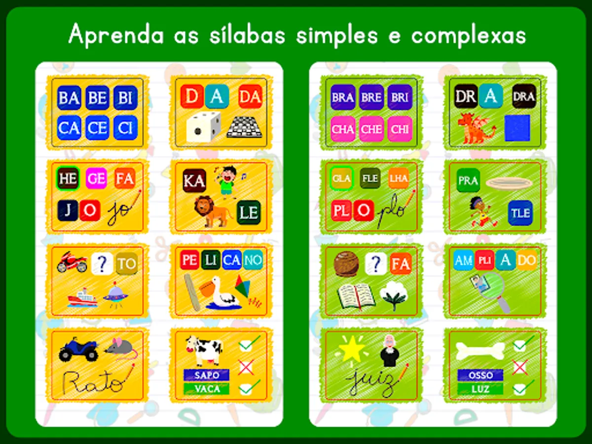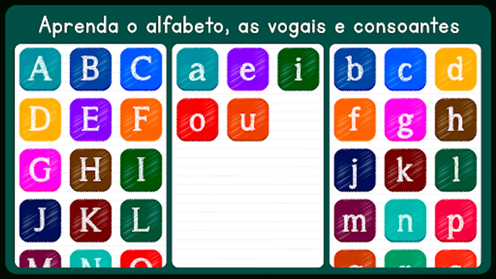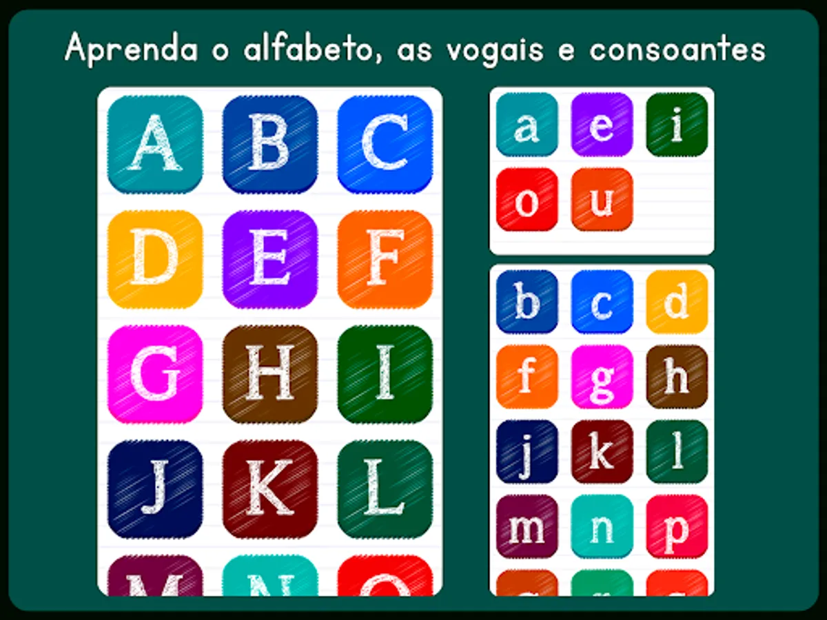 And what was already amazing is now much more complete! There are several new menus and new activities, including the "Know the Alphabet" menu, which introduces letters and the separation of vowels and consonants, which makes learning syllables much easier.