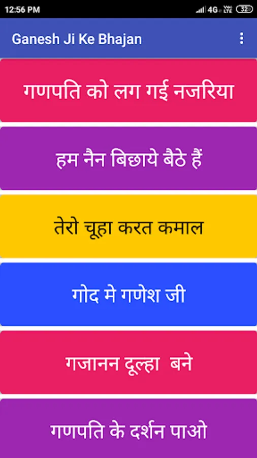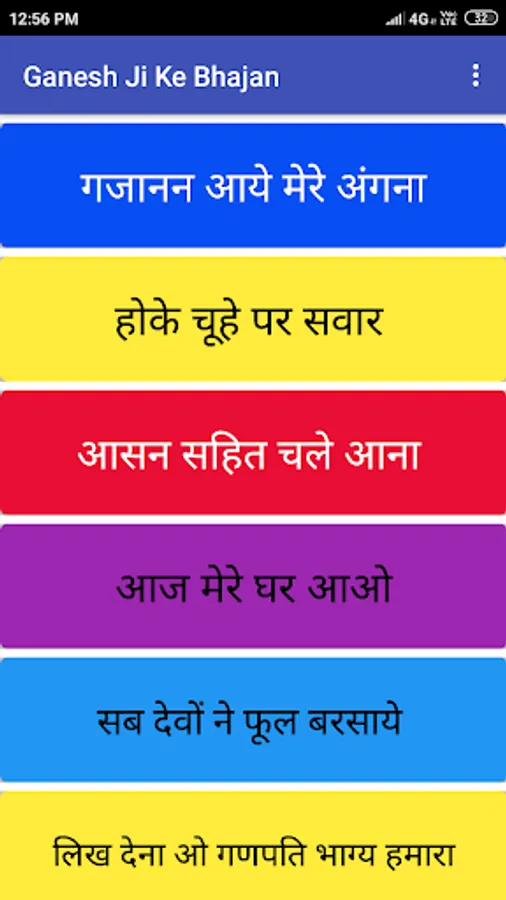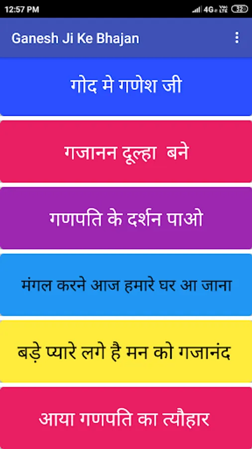 This app consist various devotional Songs of Lord Ganesha/Ganpati Ji. These are Latest Songs sung by various General People. All the songs /Bhakti Geet are latest and will give you full of energy and entertainment also. Lord Ganesh fulfills demends of their Devotees(Bhakts).