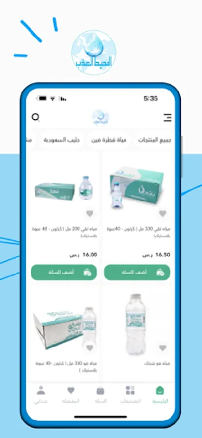 The application works to deliver mineral water and soft drinks wherever you are in your home or anywhere else, such as work or a mosque. You can order drinking water anywhere and anytime without going to the markets and consuming more time and stopping your life tasks.