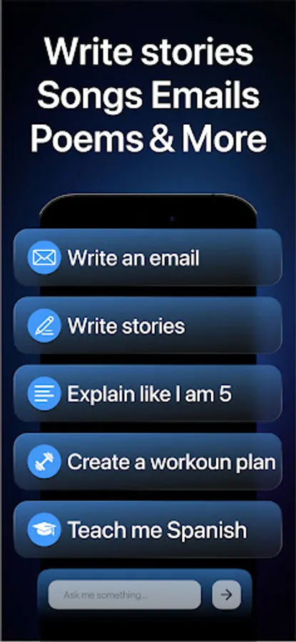 Experience personalized assistance for all your writing projects with the ChatGPT and GPT-4 powered AI Chat. Whether you need support with crafting compelling emails, delivering impactful speeches, or even creating beautiful lyrics and heartfelt poems, our platform is here to help.