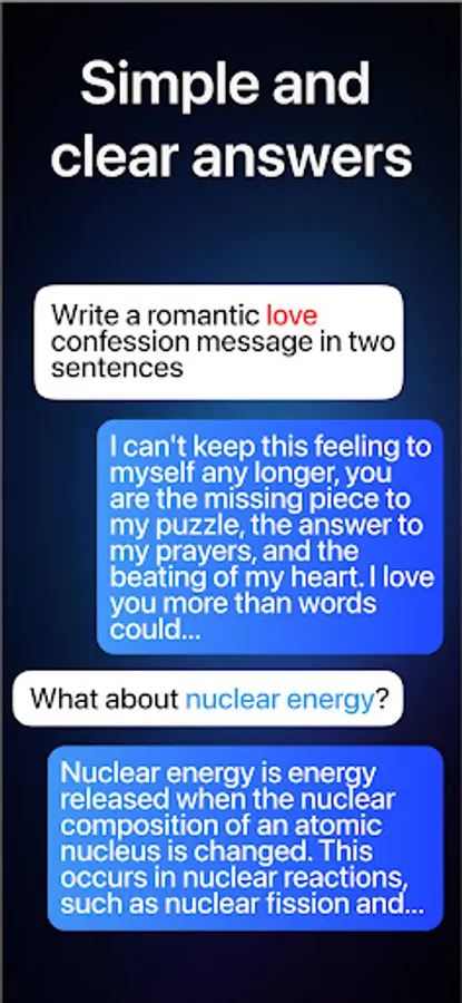AIChat is more than a machine; it understands and cares about you. To protect your eyes at night, it has a built-in night mode. With a user-friendly, optimised and intuitive interface, AIChat makes it easy to interact with your natural AI chatbot like a friend. We will be constantly improving the app to give you the most perfect assistant and companion, AIChat PRO. Please feel free to leave comments and 5-star reviews.