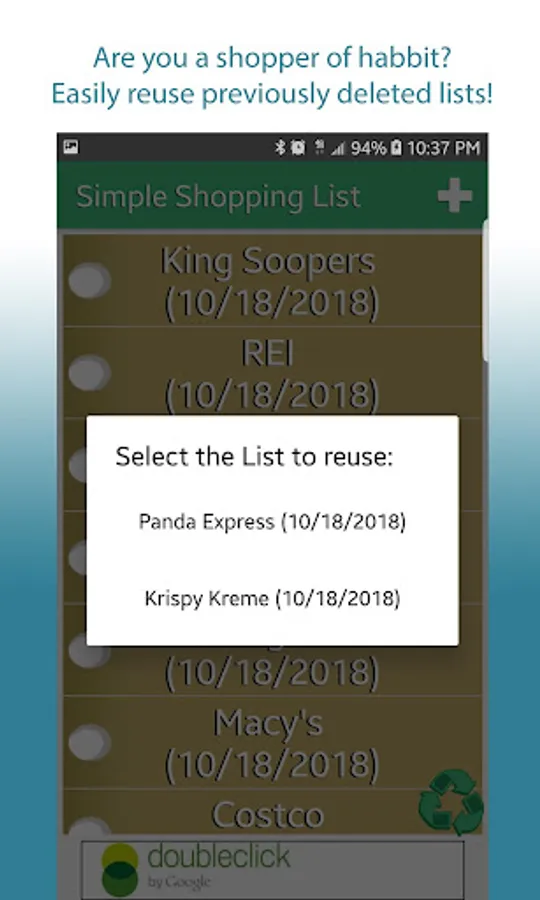 The simplest free shopping list app on the Google Play store! Run out of milk often? Prepare for shopping with this simple list app! Whether it be creating a grocery list or a general shopping list, this app will not only help you get out the door quicker, but it will help you keep shopping when at the store.