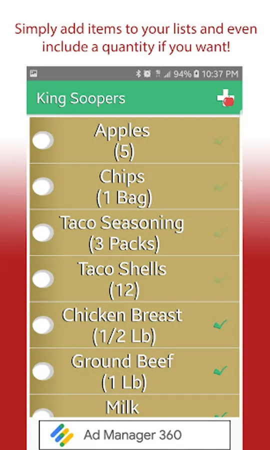 - Add items to your shopping lists.