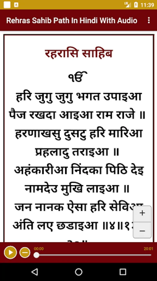 This Bani is a collection of hymns of five Sikh Gurus: Guru Nanak Dev, Guru Amar Das, Guru Ram Das, Guru Arjan Dev and Guru Gobind Singh. This app allows to read Rehras sahib path in three different language gurmukhi(punjabi), hindi and english. Purpose of this app is to let busy and mobile young generation reconnect with Sikhism and Gurubani by reading path on gadgets like mobile and tablets. Rehras Sahib is the evening prayer of the Sikhs, which speaks of the greatness of Waheguru.FEATURES OF THIS APP, ALLOW TO LISTEN PATH WITH SIMPLE AUDIO, READ IN VERTICLE AND HORIZONTAL CONTINOUS MODE, LIGHT WEIGHT.