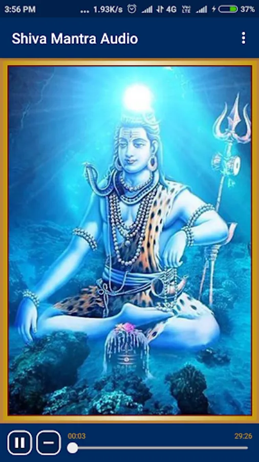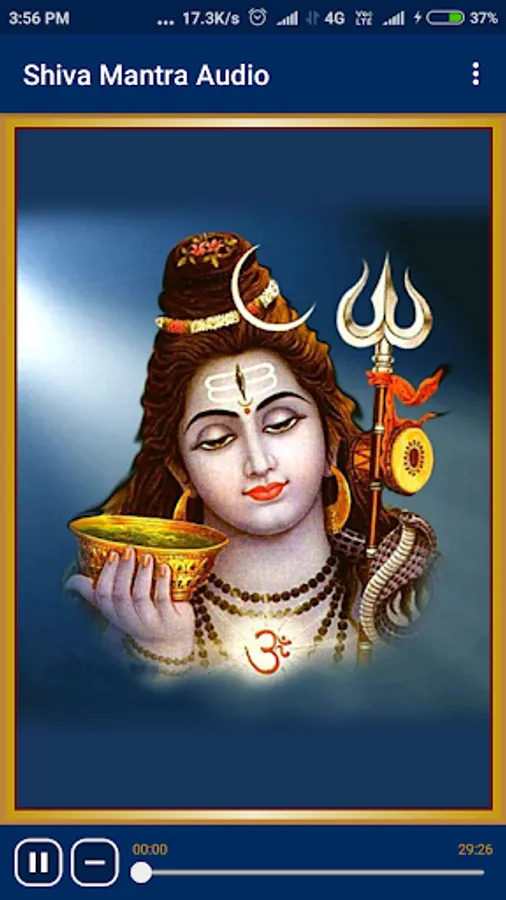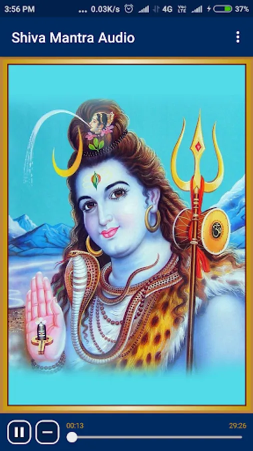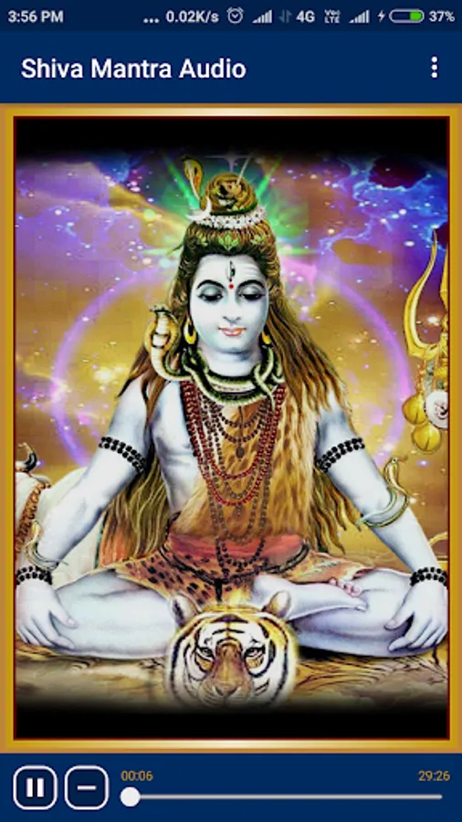 Om Namah Shivaya (ॐ नमः शिवाय) is one of the most popular Hindu Mantra. Namah Shivaya means "O salutations to the auspicious one!", or “adoration to Lord Shiva". It is a holy salutation to Lord Shiva. This Mantra appears as 'Na' 'Ma' 'Śi' 'Vā' and 'Ya' in the Shri Rudram hymn. FEATURES, PHOTO WITH AUDIO PLAY, SHIVA MANTRA AUDIO IS FREE FOR DOWNLOAD, LIGHT WEIGHT AND FAST, BEAUTIFUL AND EYE CATCHING UI VERY EASY TO BE USE. USER CAN DOWNLOAD OUR OTHER APPS