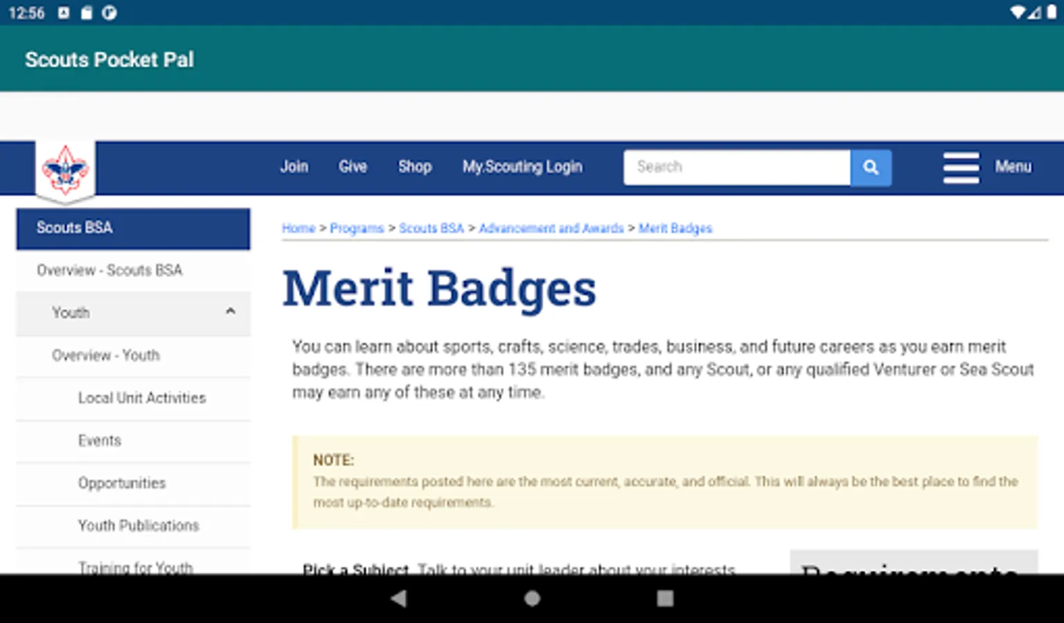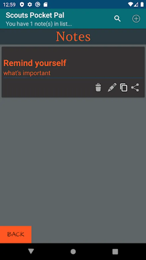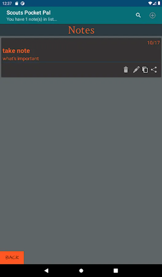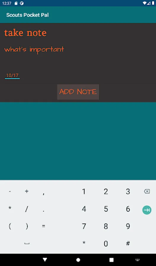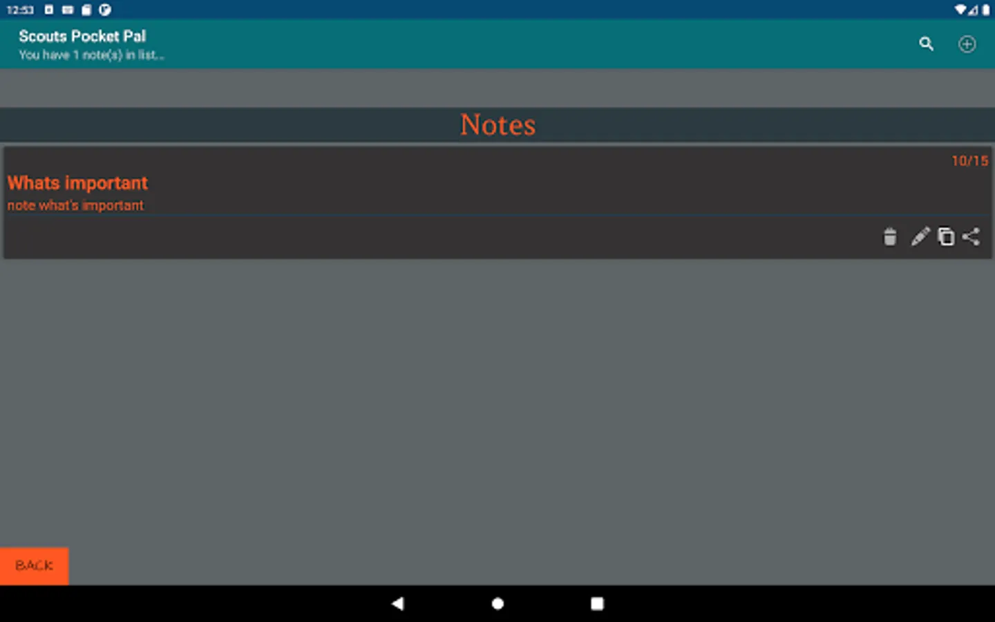 Leave yourself notes on upcoming events or requirements for your next Merritt badge with the built-in note keeper. Save it edit it delete it or share it with a friend to keep your friends and family on the same page. Scouts aren't meant to be a one-man rodeo. It's teamwork and family backed activities. Slam packed with activities, goals to conquer, and badges and ranks to obtain it's helpful to take note so you don't miss out.