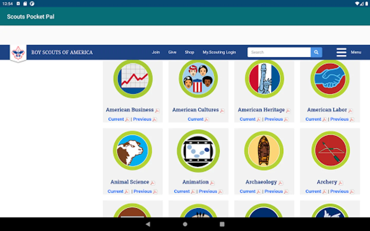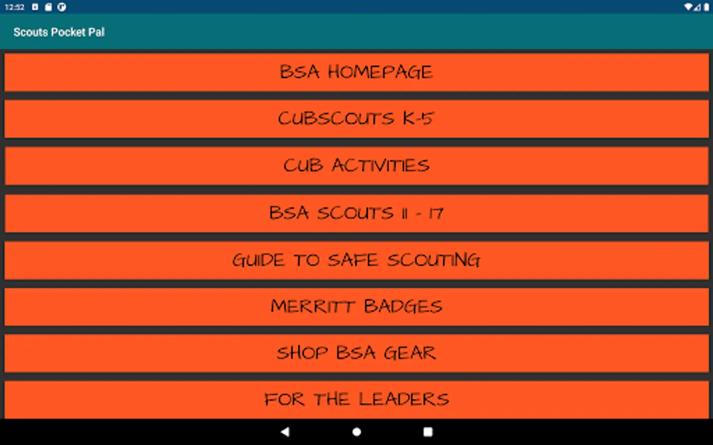 BoyScouts reference and quick navigation to information regarding the boy scouts of America. Events descriptions along with relevant rules information or tips. Merritt badges so you see one you like or one catches your curiosity quickly and easily search for it in-app. The web links also provide pdf with full docs from origin to present requirements. Information whether your a scout, scout leader or parent of a scout as lost as I was interacting with my children on the scouting adventure.