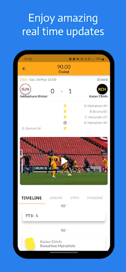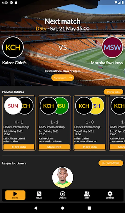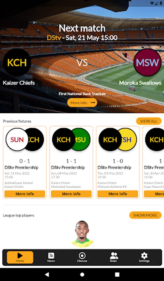 ✔ You get Kaizer Chiefs FC Official Updates and watch PSL (Also know as DTSV premier league) & Kaizer Chiefs live Matches, Highlights, History, Match analysis and other events in football world in real time