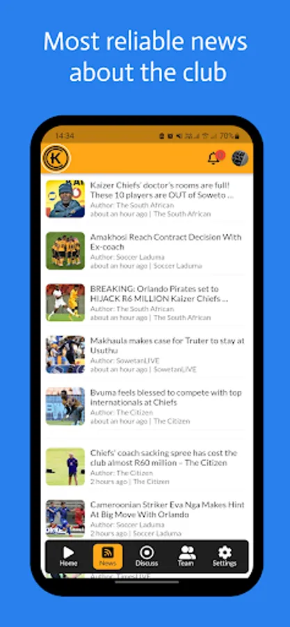 Follow Kaizer Chiefs anytime and anywhere with us and other fans. This is more than just a sports app. This is an entire football community with chats, blogs and multiple opinions.