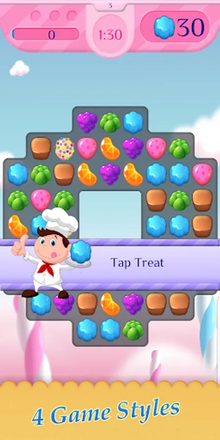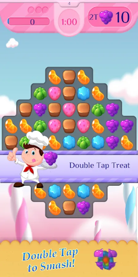 * The goal is simple yet challenging: Smash the target number of tasty treats before time runs out and score enough points to collect your gold bars!