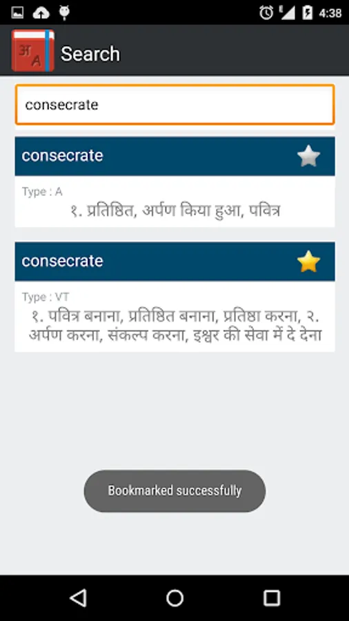 Free and Offline English to Hindi Dictionary (हिन्दी शब्दकोश). This is a must have app for all those who constantly wants to increase their knowledge in English or Hindi language or simply trying to learn English. This app is a quick reference/guide to almost 15 thousands words with completely offline reference. A light weight app works offline and gives faster results without any hassle.