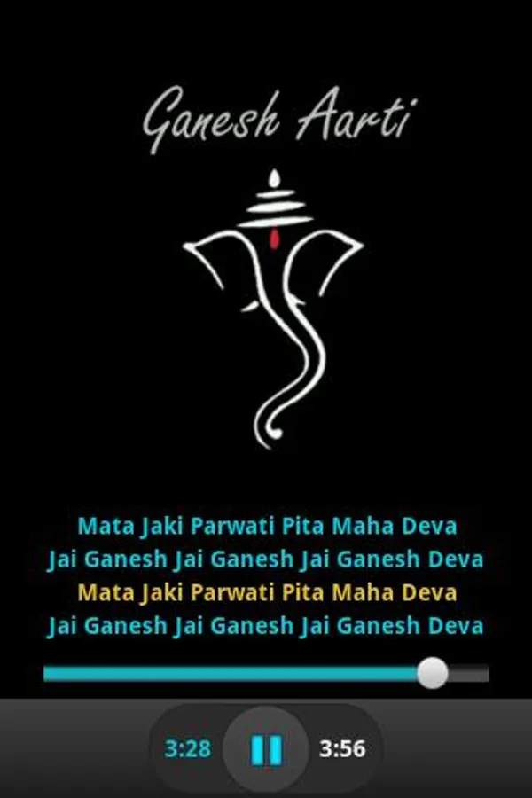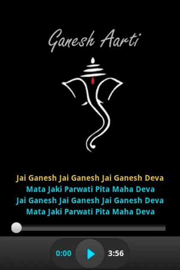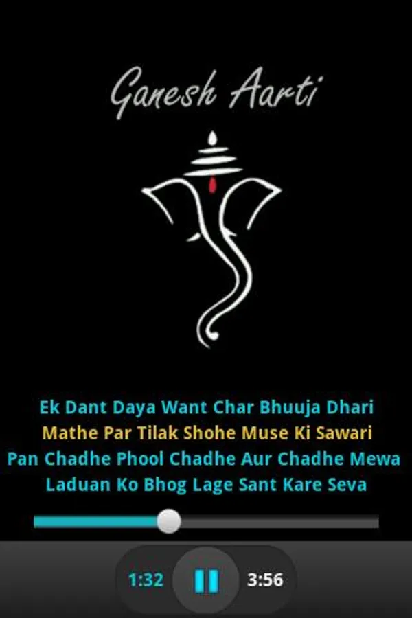 This app provides audio and lyrics display of Ganesh Aarti. In addition to this it also highlights the line which is being played by audio player.