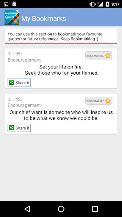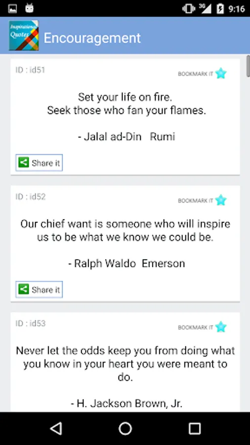 Free & offline collection of 'Inspirational Quotes' from various famous authors which you can easily share with your family and friends. Under this application you will find hand picked collection of quotes by famous people to inspire and challenge everyday.