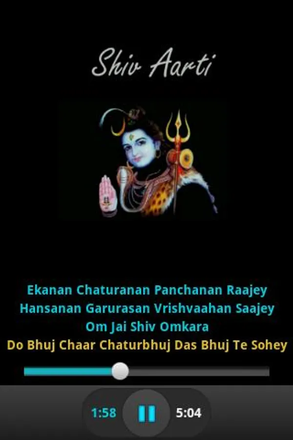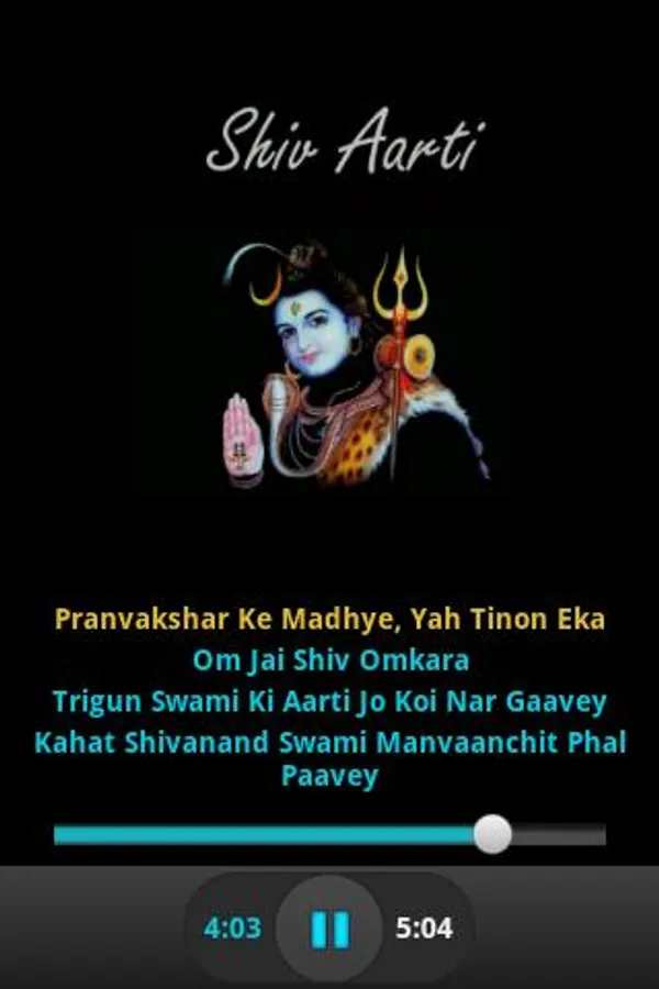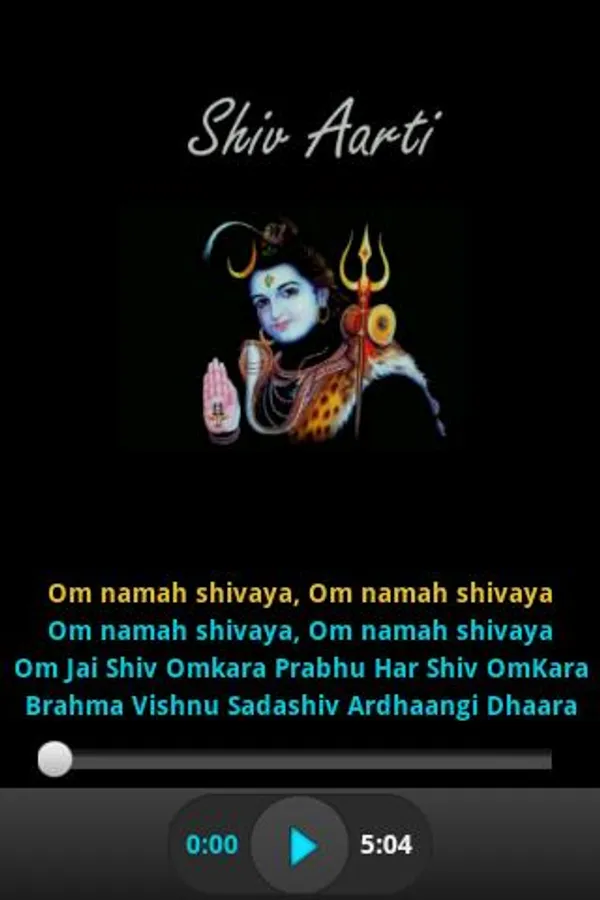 This app provides audio and lyrics display of Shiv Aarti. In addition to this it also highlights the line which is being played by audio player.
