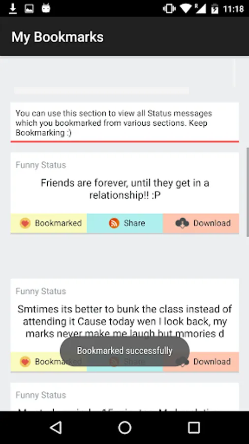 This app will also help you to bookmark your favorite status message for future references. Some of the salient features of this app are: