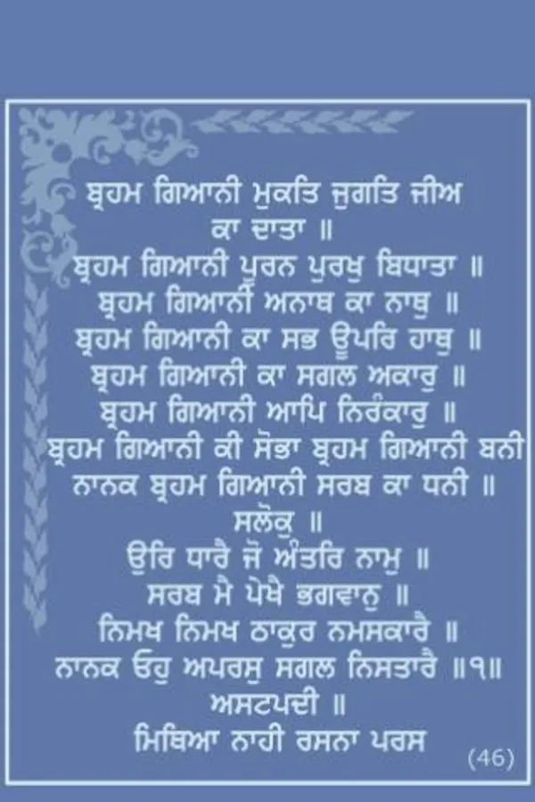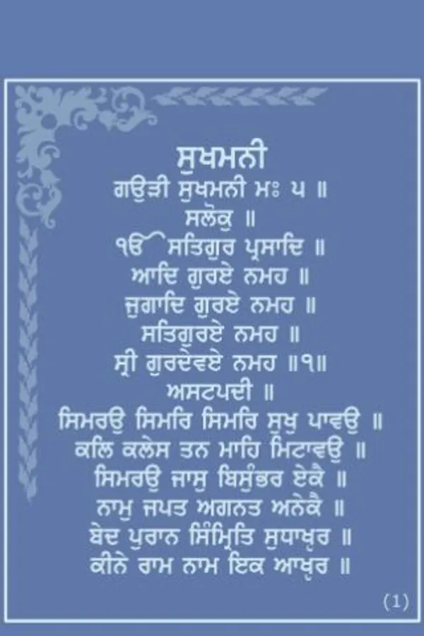 Ambrosial nectar of wisdom, Sri Sukhmani Sahib, is a beautiful composition of divine verses by the fifth Guru, Sri Guru Arjun Dev. Sukhmani Sahib is the title given to the Gurbani in raga Gauri Sukhmani in the Guru Granth Sahib which in turn appears in the major musical measure Raga Gauri to which it belongs.