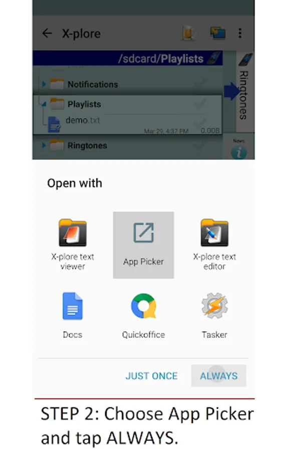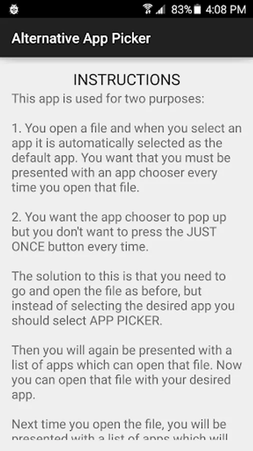2. You want the app chooser to pop up but you don't want to press the JUST ONCE button every time.