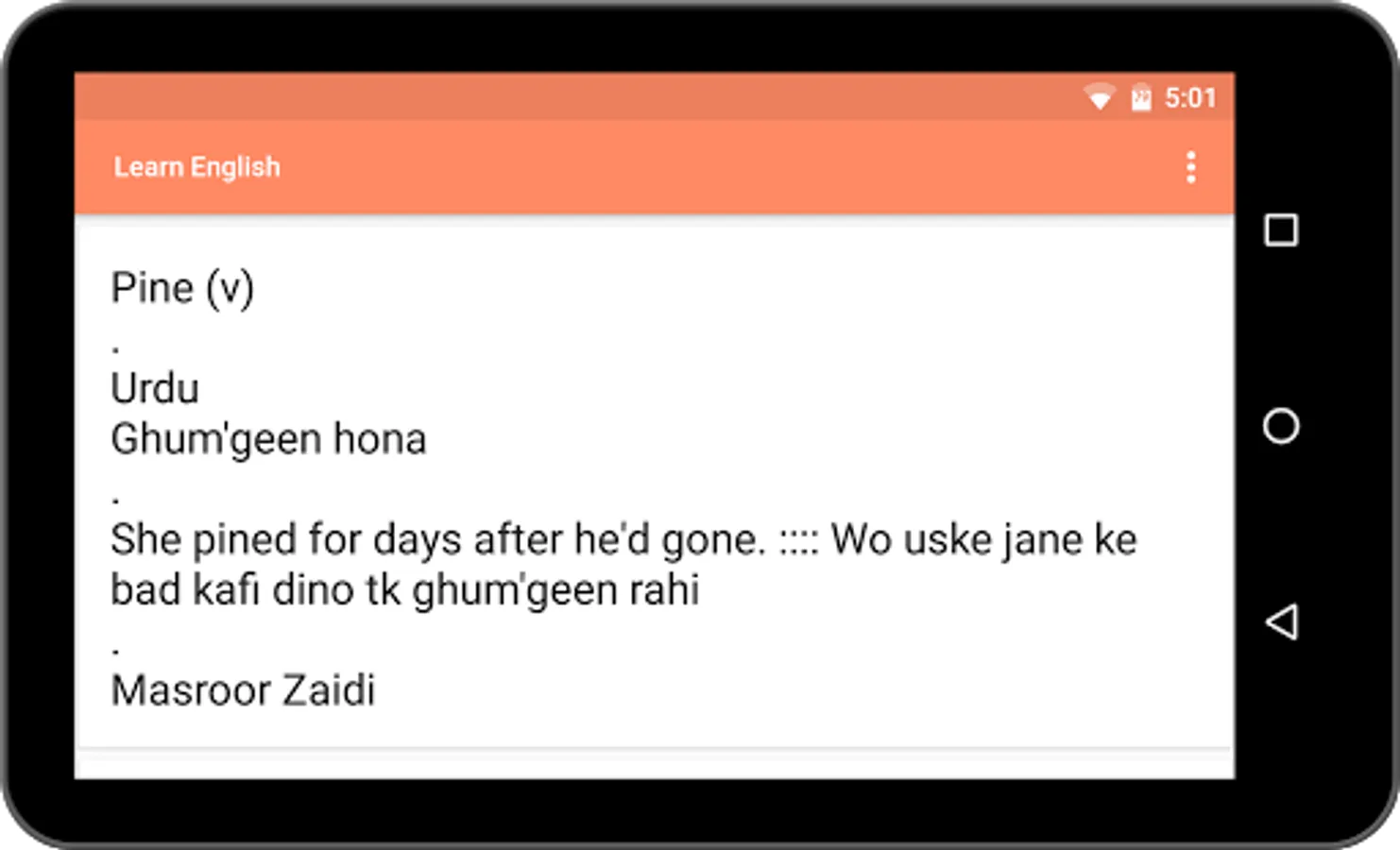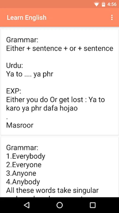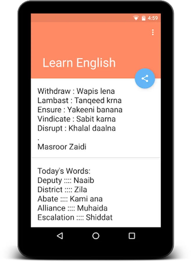 This app teaches you common words of English with their Urdu translations by showing informative cards. The application updates these cards as and when they become available.