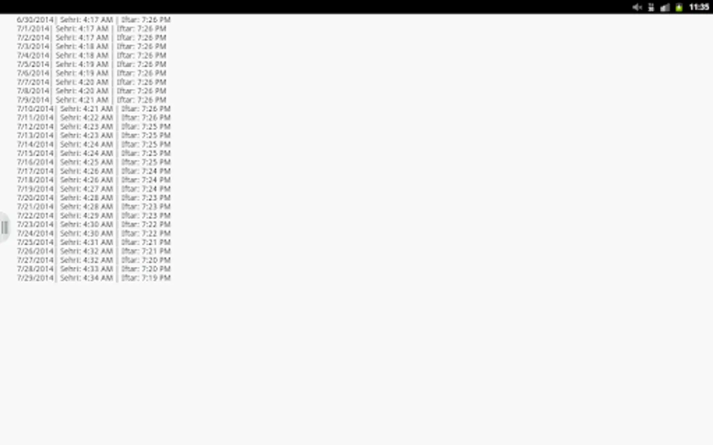 This widget is intended for the people living in Karachi, Pakistan. This shows the timings of Sehri and Iftar for the sacred month of Ramadan in a very simple format on your home screen.